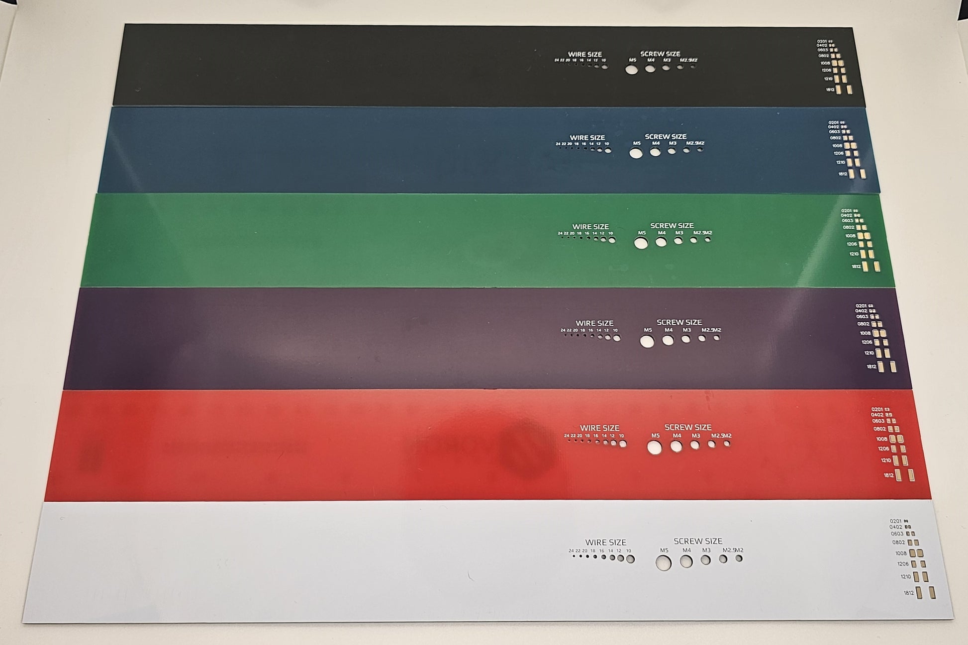 These are 12 inch long PCB rulers; available in black, blue, green, purple, red, or white.